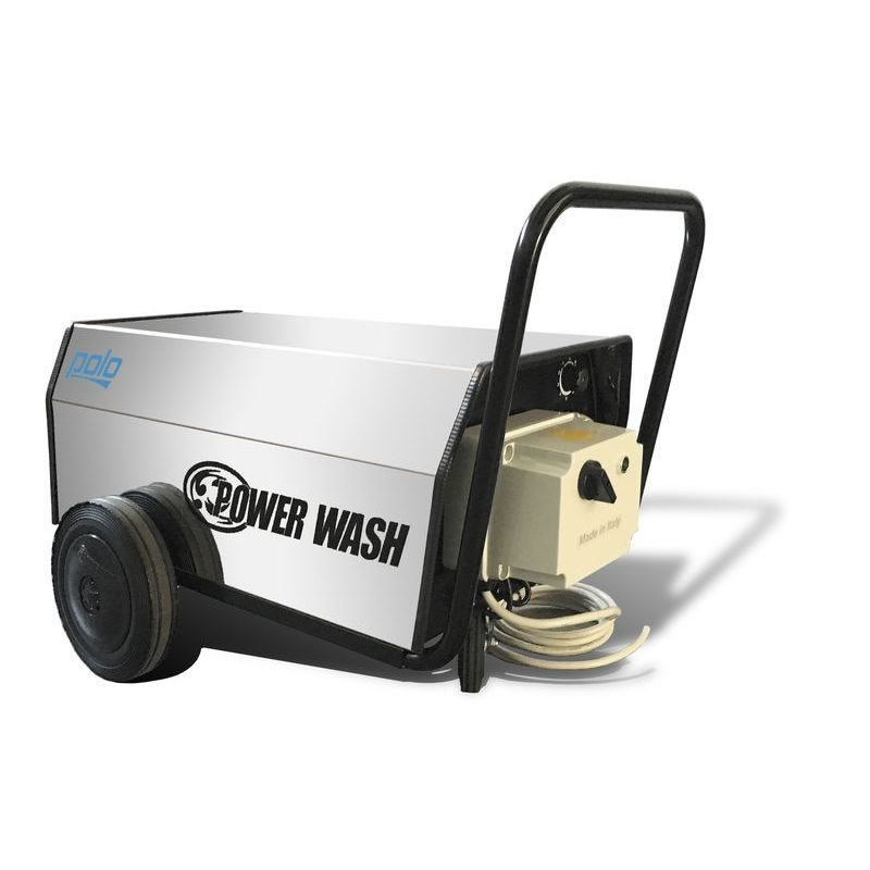 Professional cold-water pressure cleaner with group pump motor at 1450 rpm, motor at double bearings and pump with three ceramic pistons, connecting rods and camshaft.